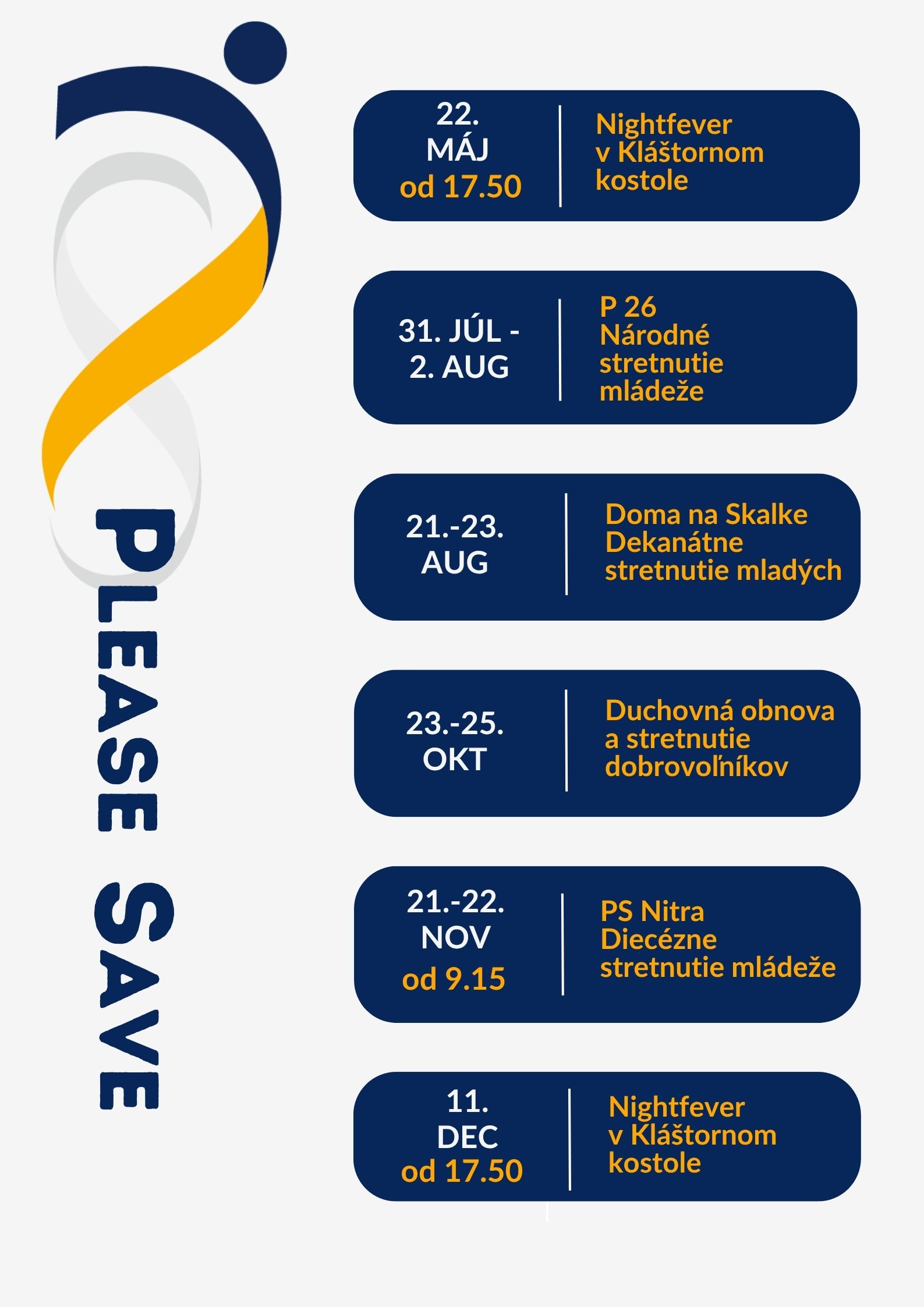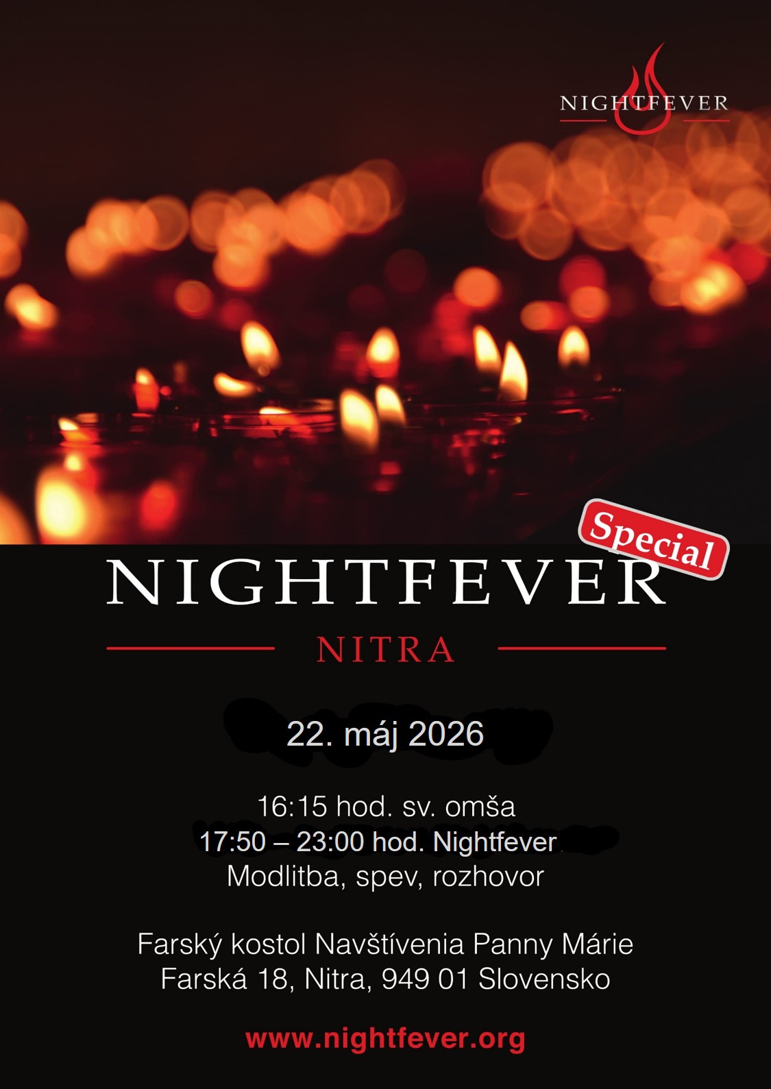 Najbližšie sa bude konať 22. mája 2026 od 17.50 hod. v Kláštornom kostole na Farskej ulici v Nitre.